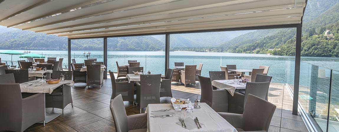 Dopo la colazione, non saranno da meno pranzi e cene. Primo ingrediente della nostra cucina è la meravigliosa vista sul lago, da godervi durante i pasti, sia all’interno, nell’ampio e luminoso salone tradizionale, che all’esterno dell’Hotel, sulla nuovissima terrazza moderna. Ammirare il nostro meraviglioso lago, un paesaggio rilassante e romantico, a lume di candela o al tramonto, vi predisporrà al meglio per assaporare la nostra ottima cucina. Nota infatti è l’abilità e la fantasia dei nostri chef, che amano abbinare la cucina moderna al gusto e alla genuinità della tradizionale tavola Ledrense e delle tipiche ricette italiane. Prodotti freschi e del territorio, sapori delicati o decisi, sempre serviti con attenzione e professionalità dal personale estremamente cortese e sensibile.
